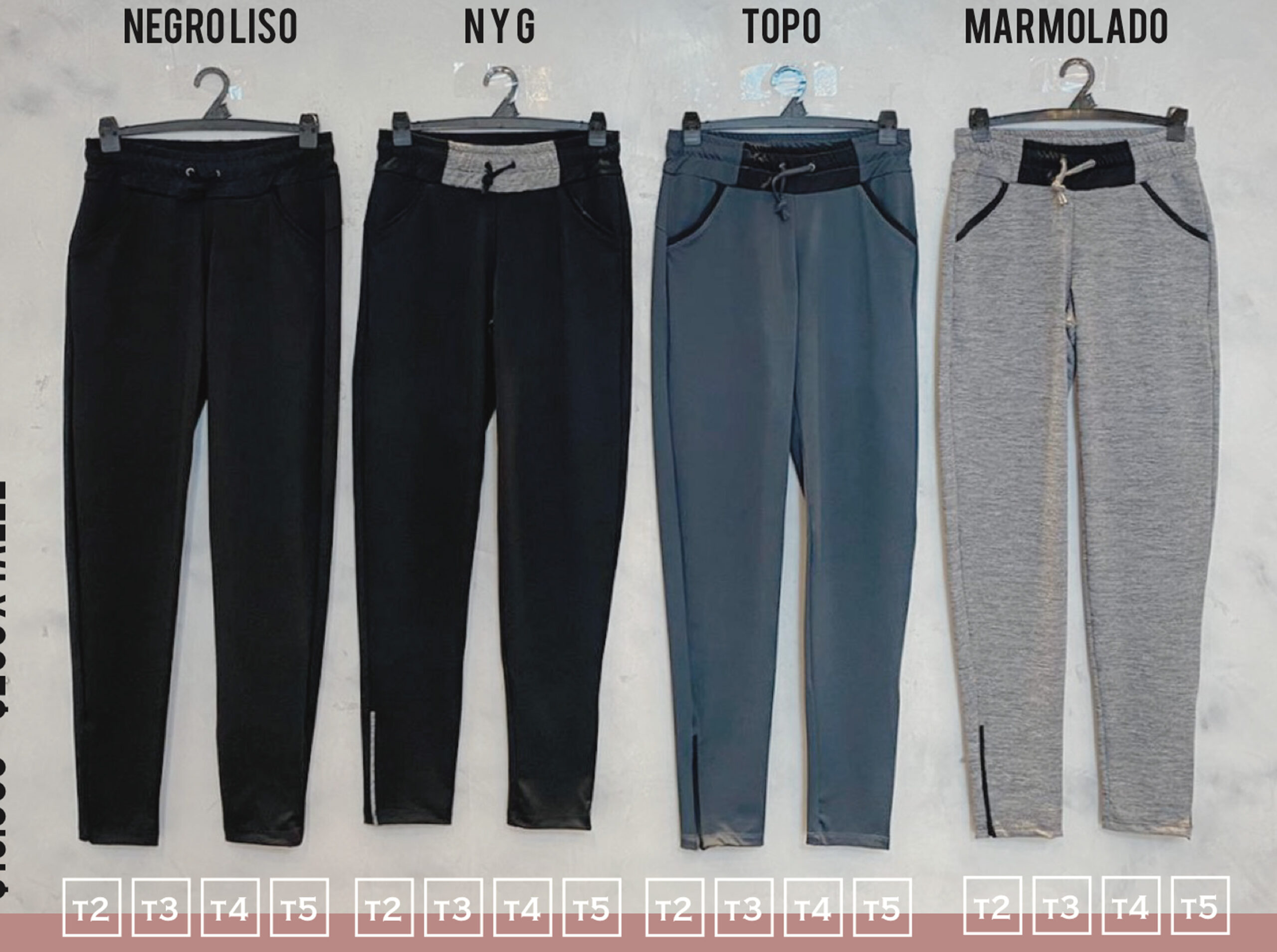 Descripción: babucha chupin con bolsillos y cierres en las botamangas