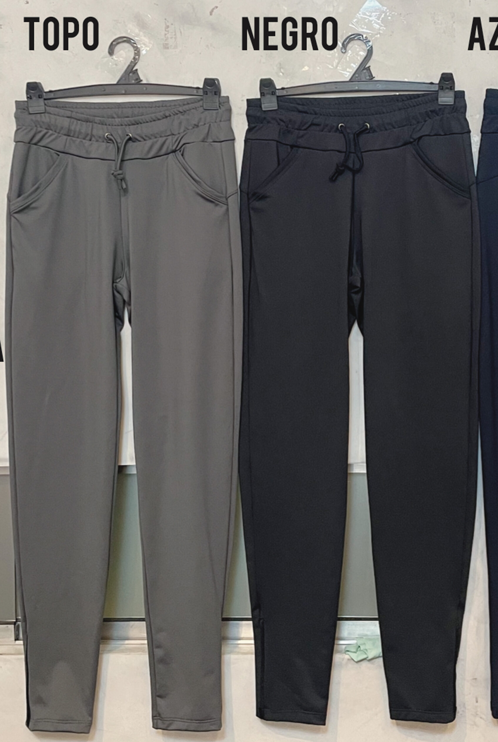 Babucha semi chupín supplex lycra frisado con bolsillos y cierres en las botamangas