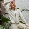 Textil: algodon con poliester, es una tela con textura levemente acanalada, se caracteriza por su cuerpo, linda caida y resistencia