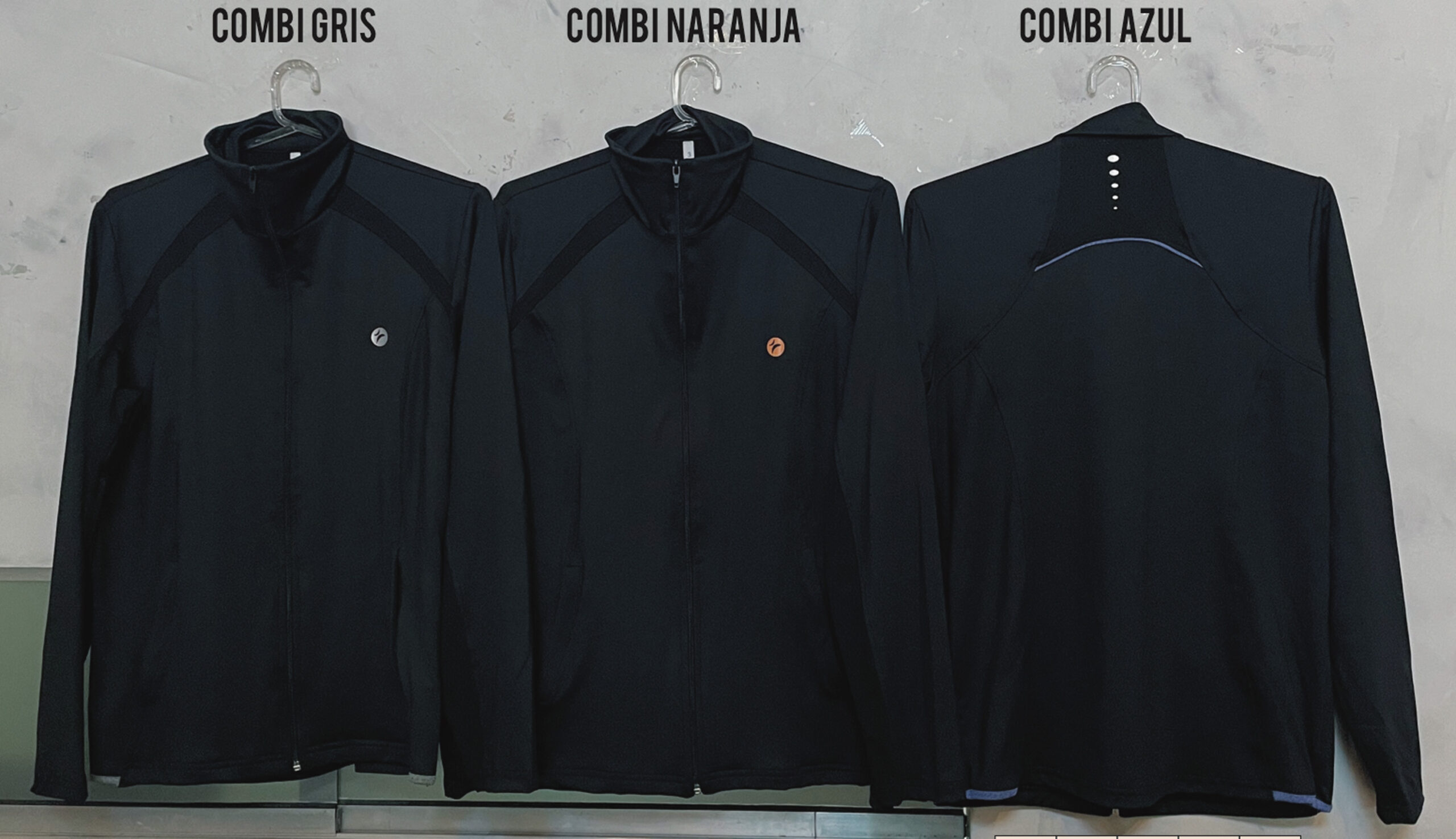 Campera lycra deportiva sin capucha y detalles de envivado de color
