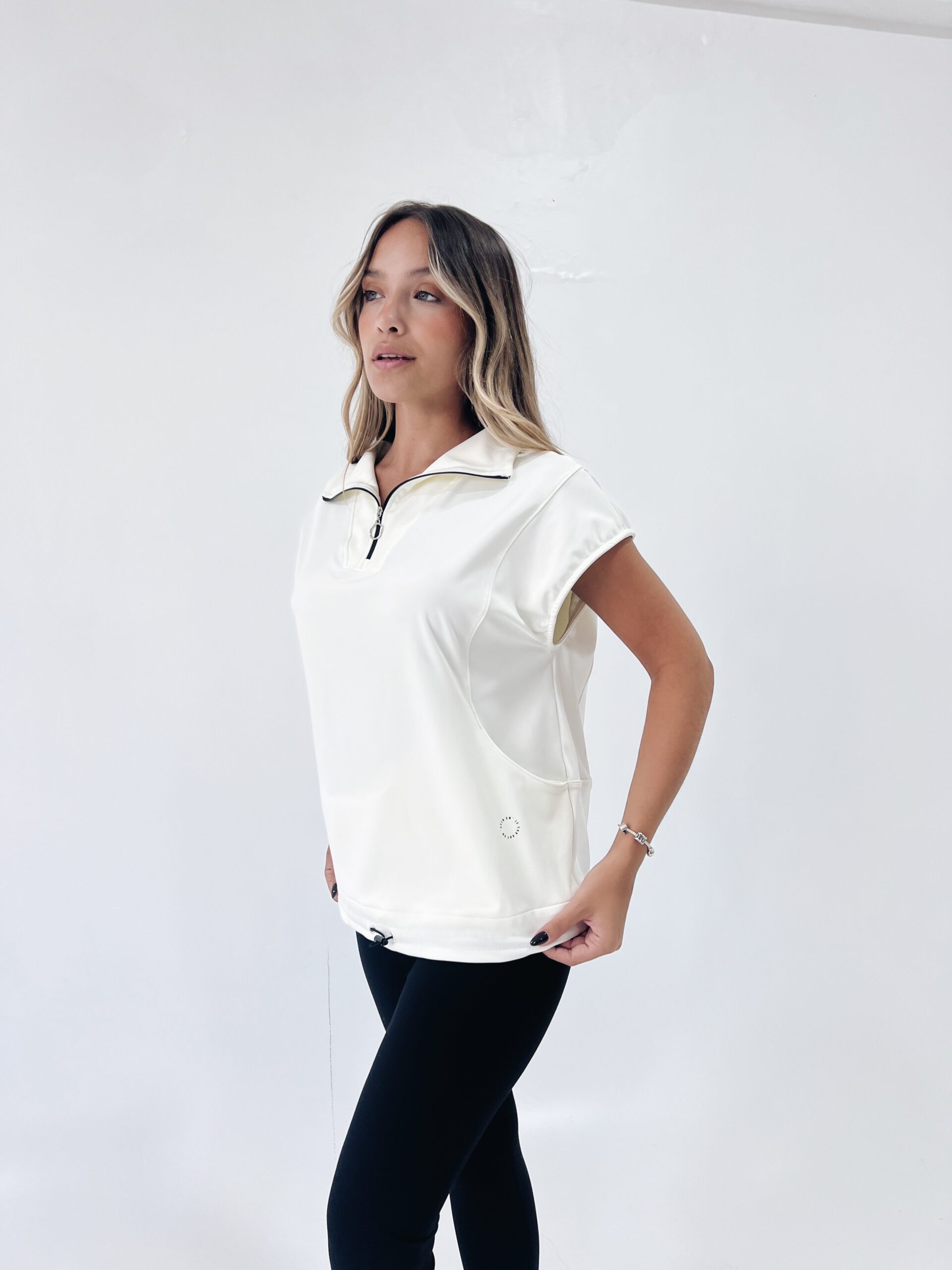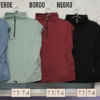 Descripción: chaleco estilo remeron cerrado con medio cierre, bolsillos y elastico ajustable