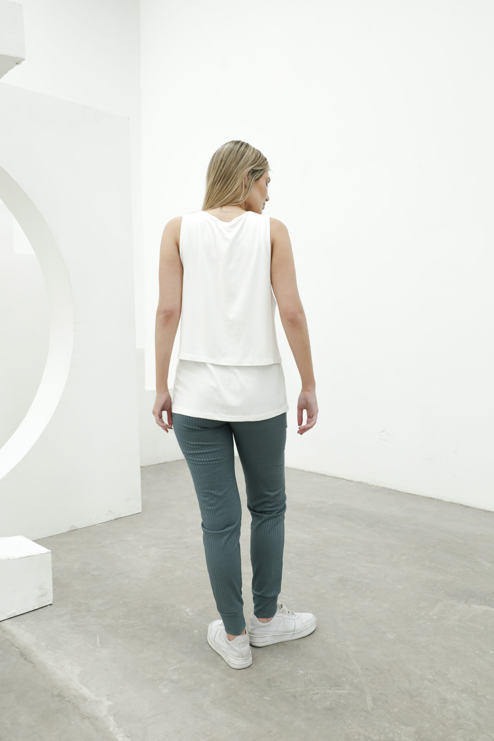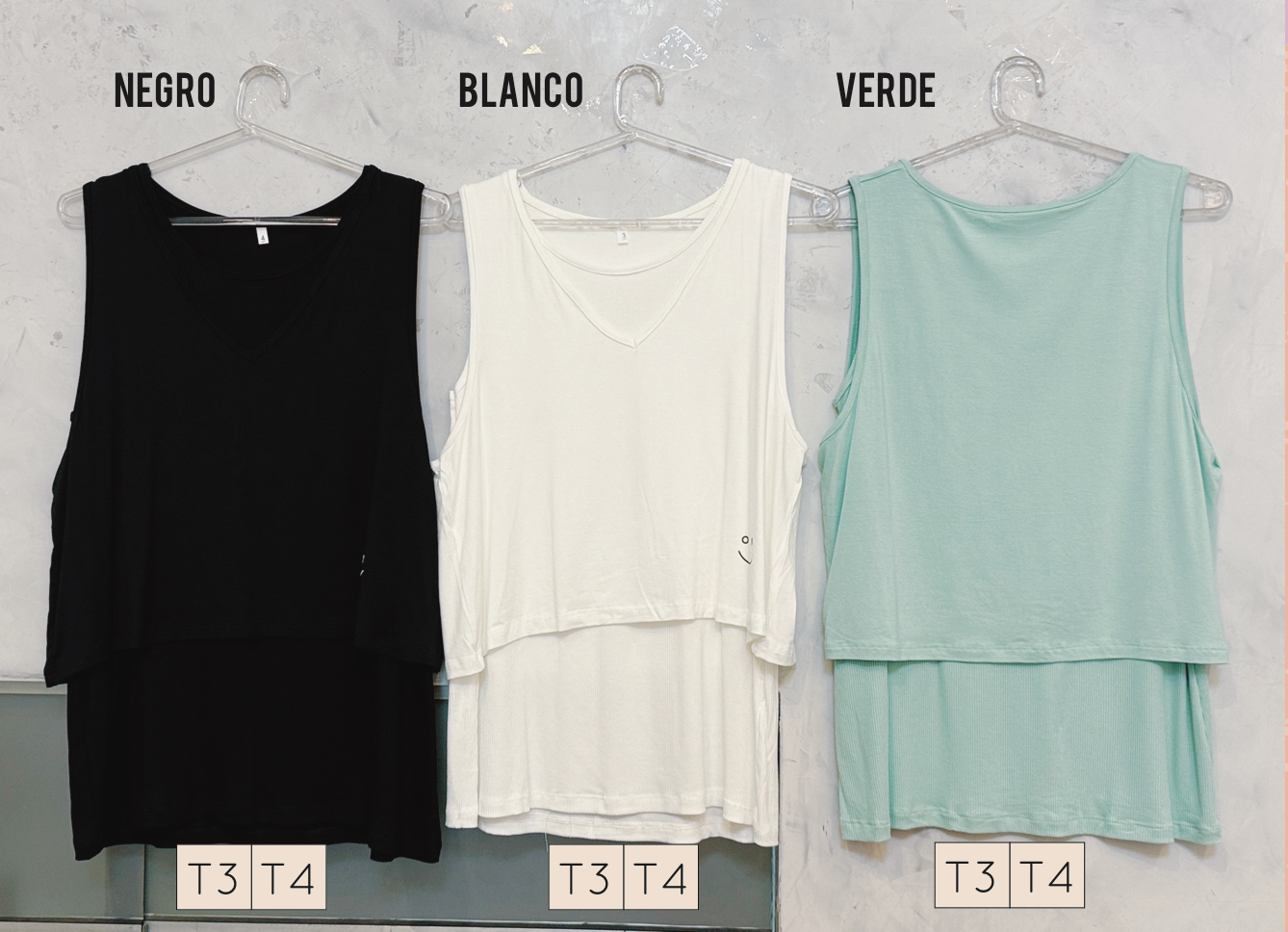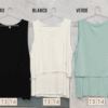Descripción: Musculosa con pequeña estampa + una capa corta interior de la misma tela pero el ribb. cuello escote v