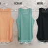 Descripción: musculosa corte evasé con combinado en hombro y espalda de tela fantasía