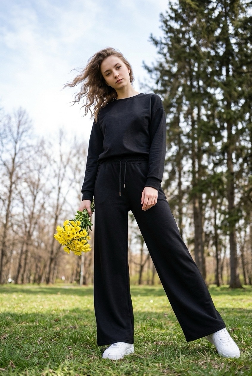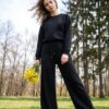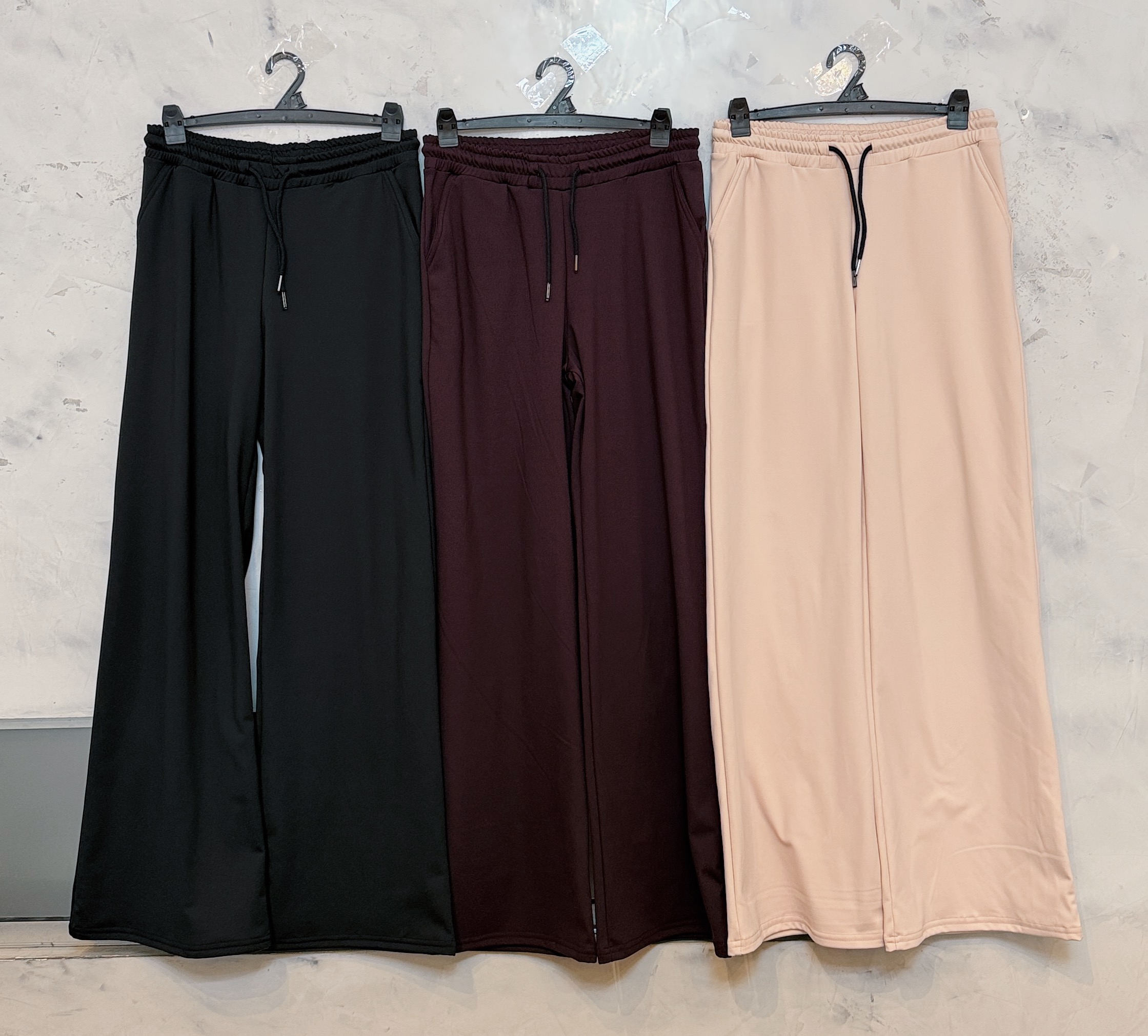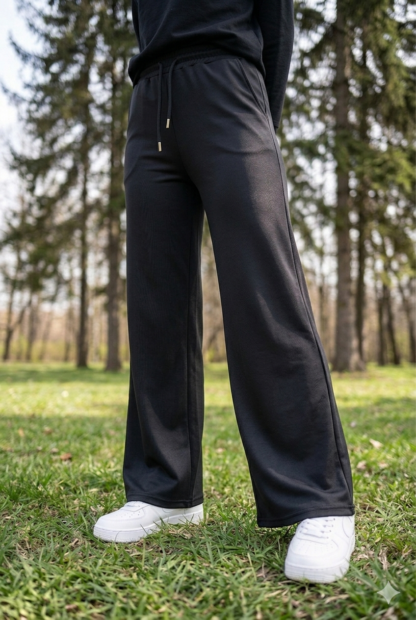 Descripción: Pantalón tiro alto palazzo, con bolsillos, elastico en la cintura y cordón