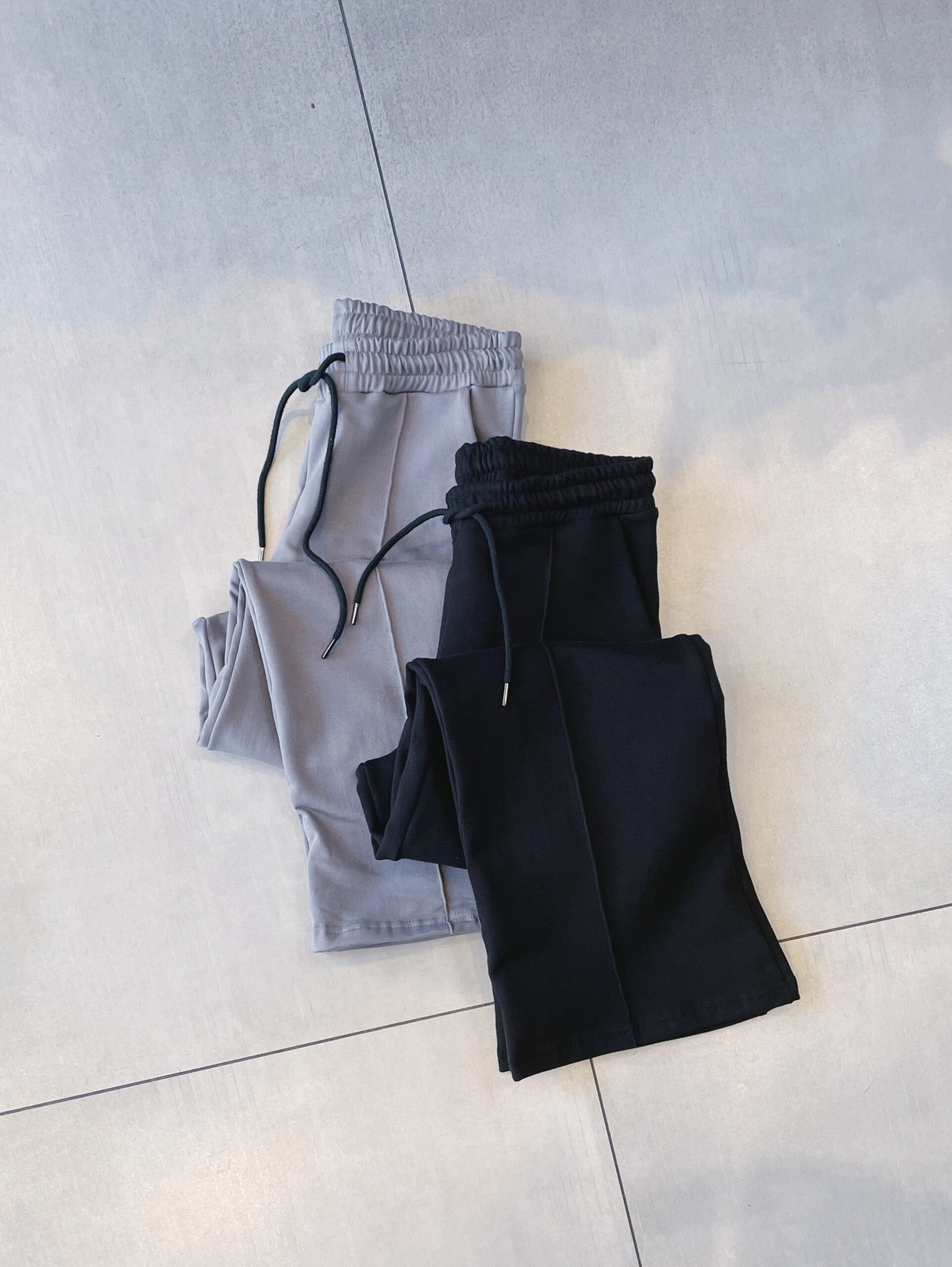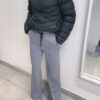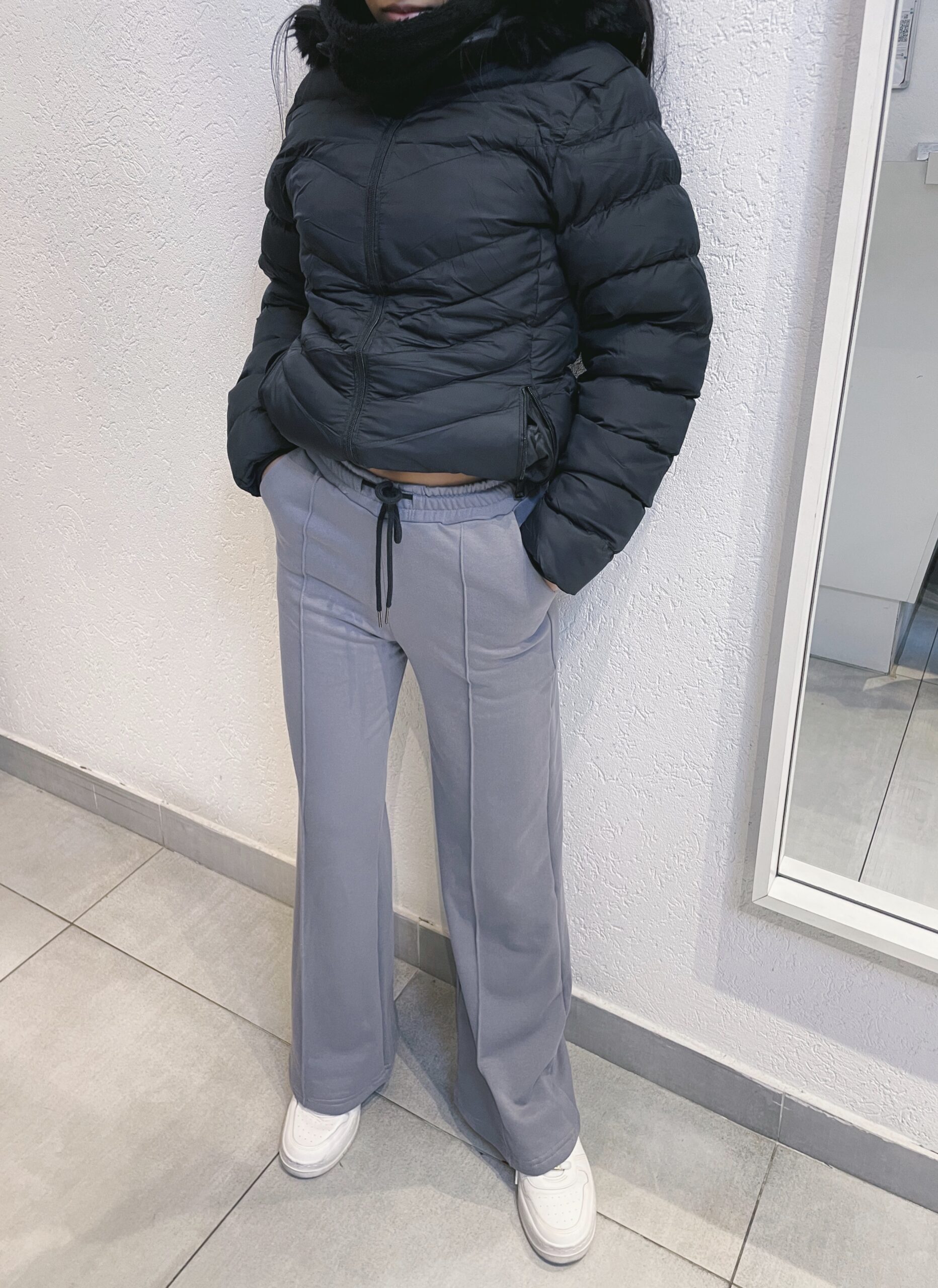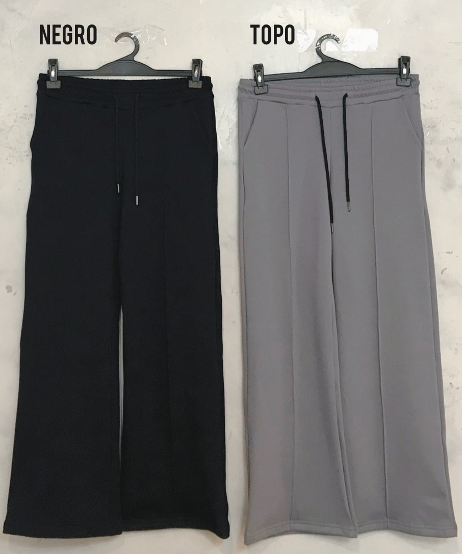 Pantalón wide leg en tela algodón frisado abrigado con elastano y cordones ajustables