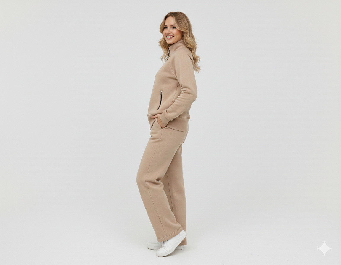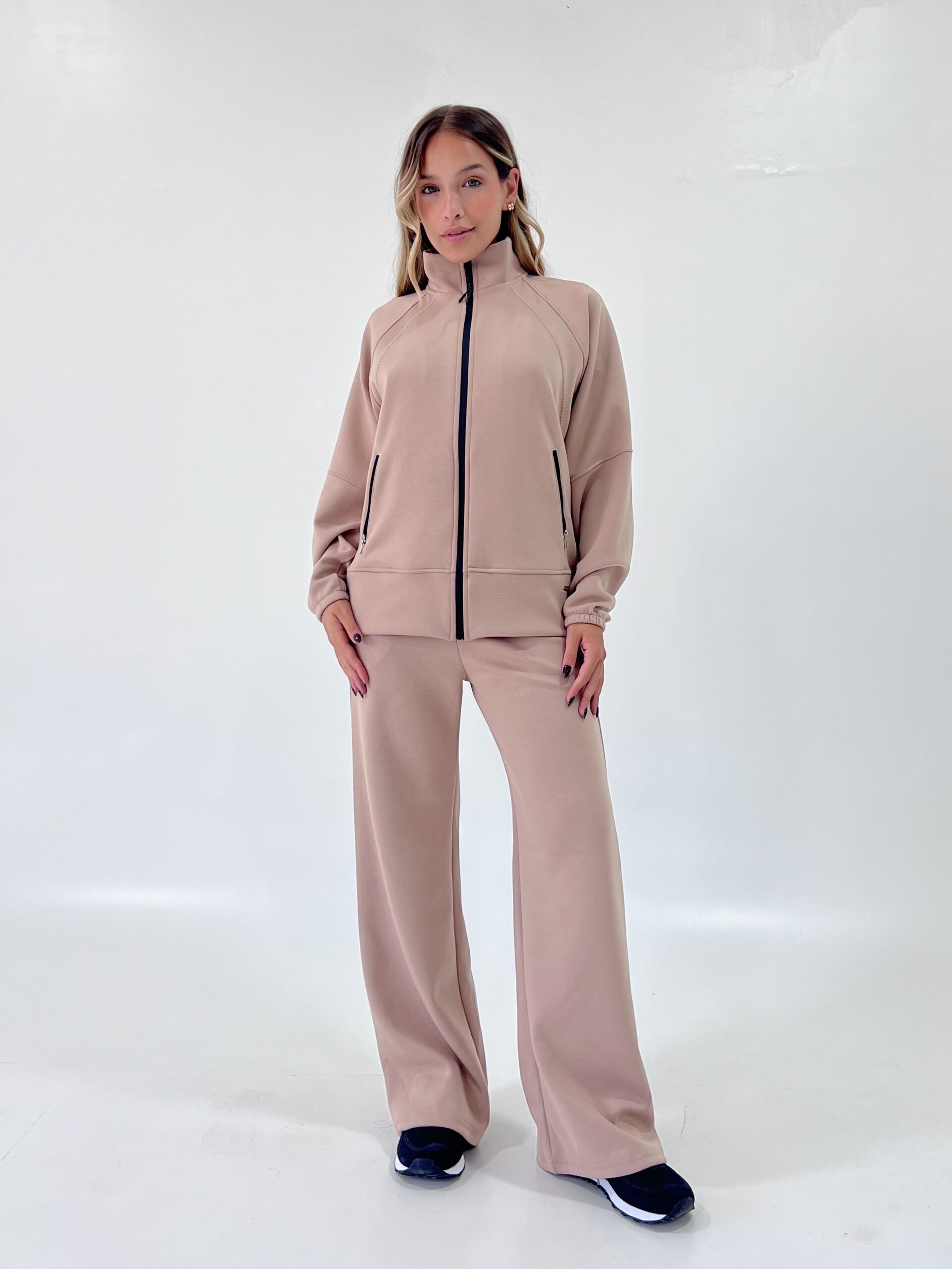 la modelo esta usando un talle 2 beige
