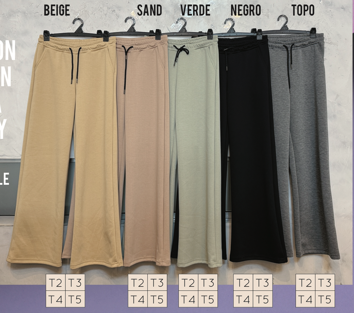 Descripción: Pantalón wide leg recto-ancho elastizado con cordon ajustable en cintura