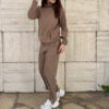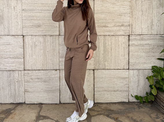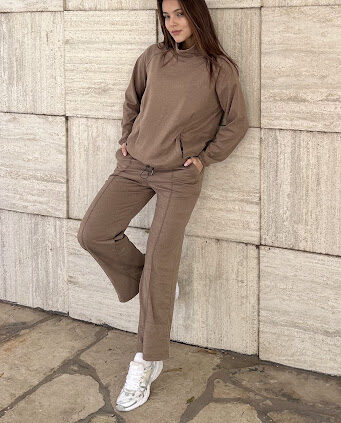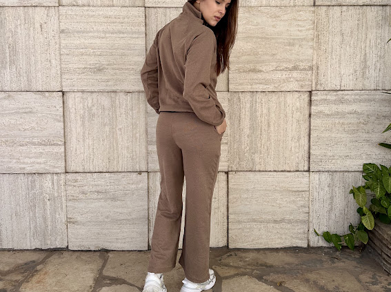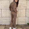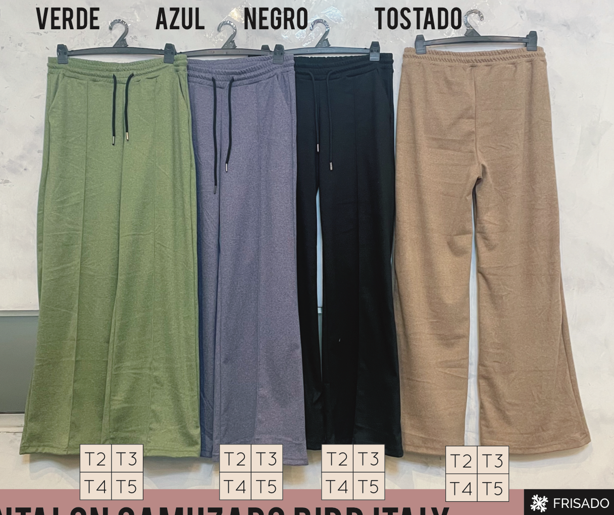 Pantalón tela supersoft ribb gamuzado corte wide leg con elástico y cordones