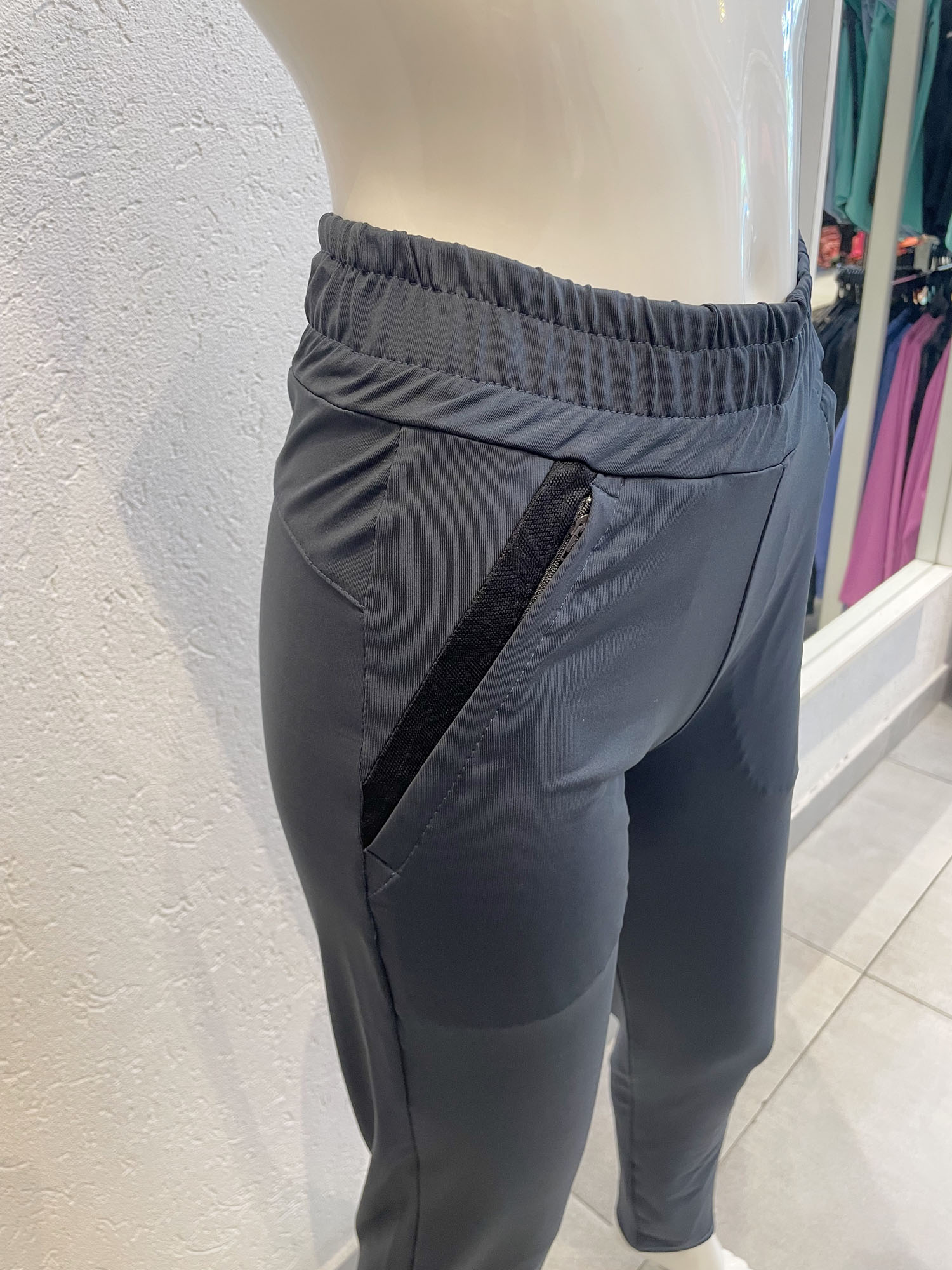Descripción: pantalón semi recto con cierres en los bolsillos y elastico en la cintura