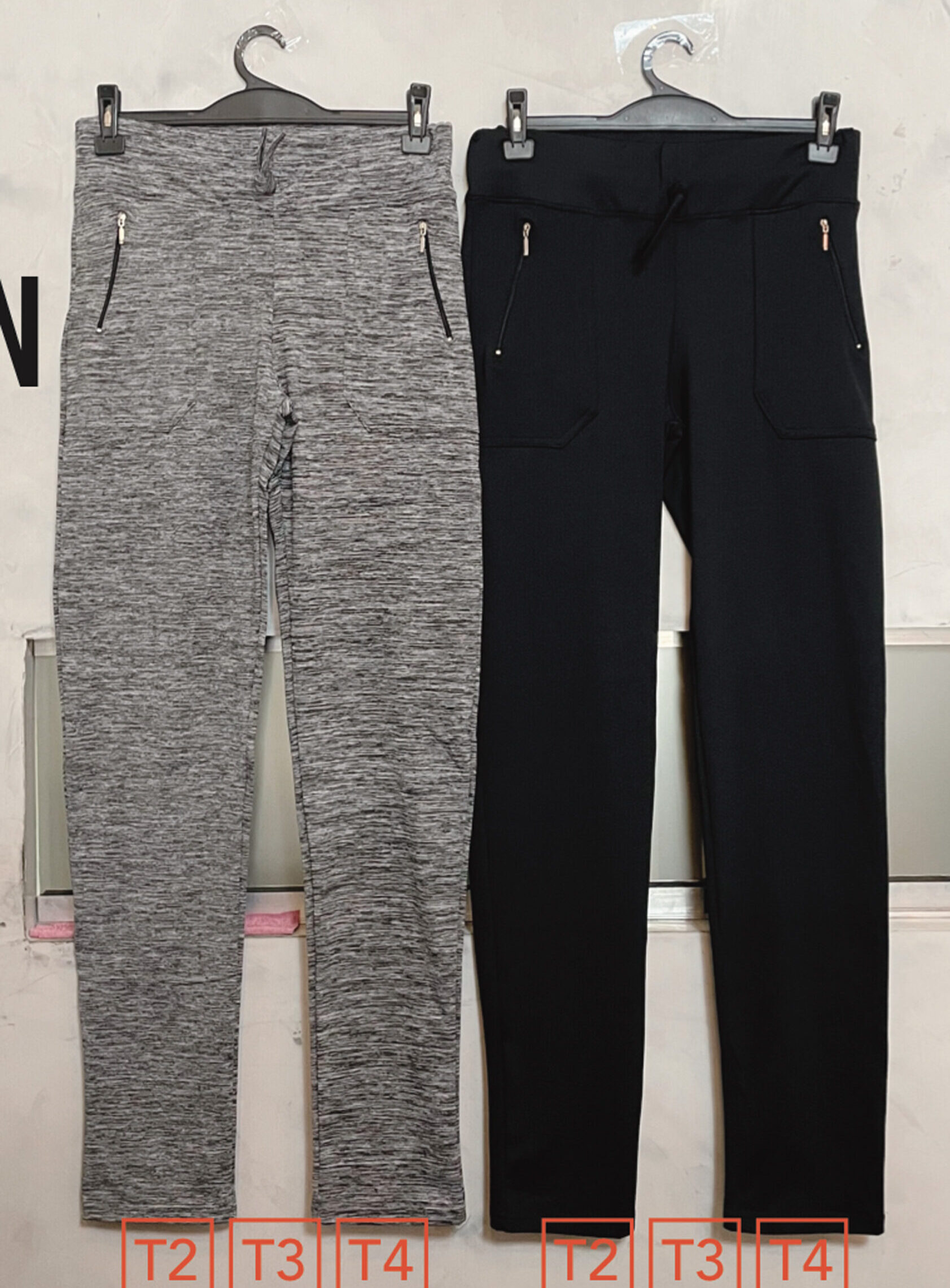 Pantalón recto supplex lycra frisado con cierres en los bolsillos