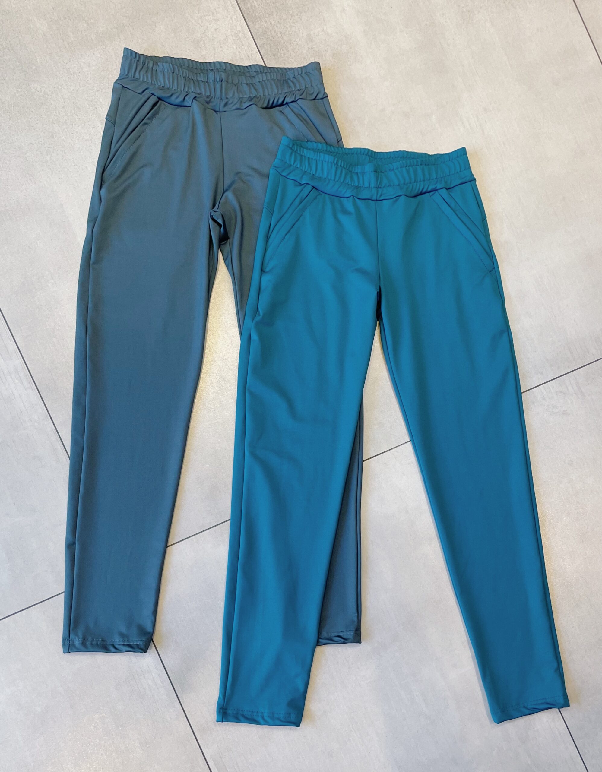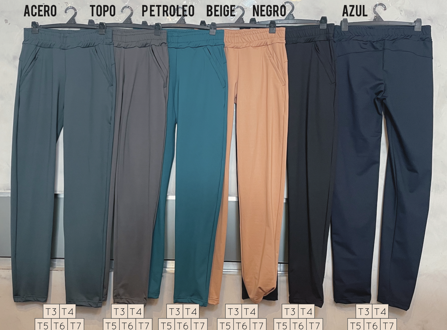Pantalón semi recto supplex lycra frisado con cierres en los bolsillos