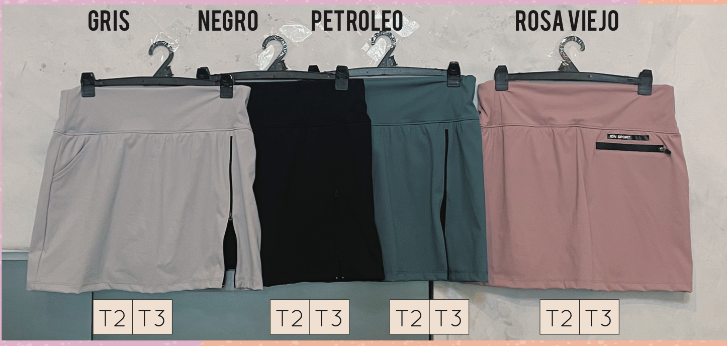 Descripción: Pollera con short calza interior y un cierre frontal regulable