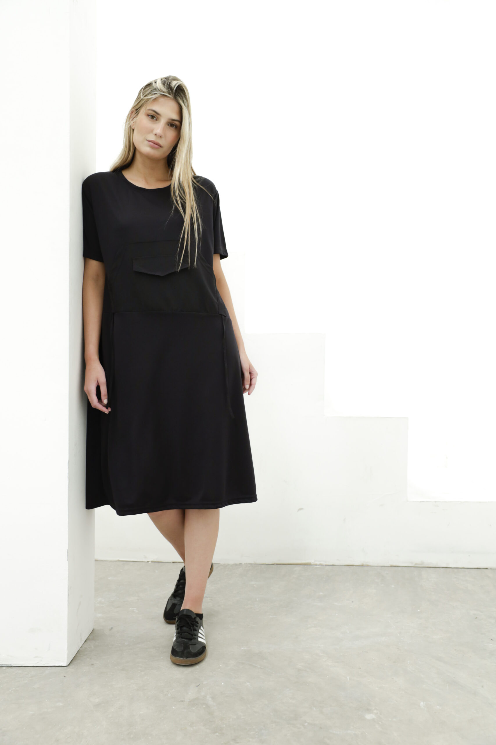Descripción: vestido mangas cortas largo debajo de las rodillas, con bolsillo en tela rompeviento